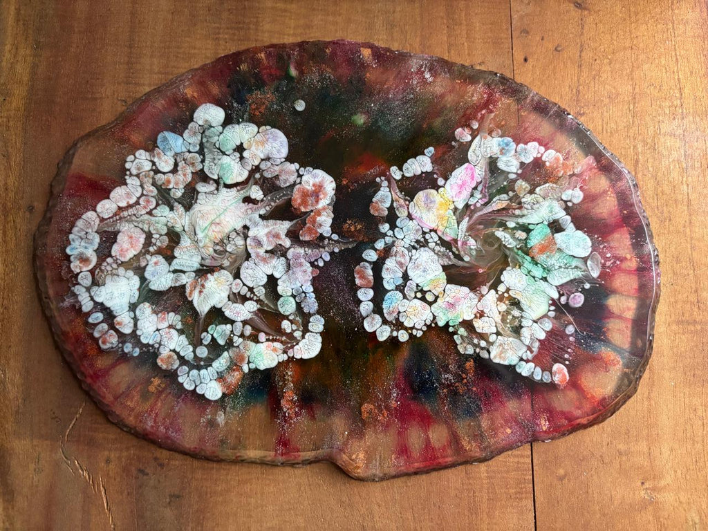Cada item é singular, feito à mão, com alma e intenção, o resultado final é sempre uma surpresa, nem o artesão tem clareza de como a resina vai se comportar!