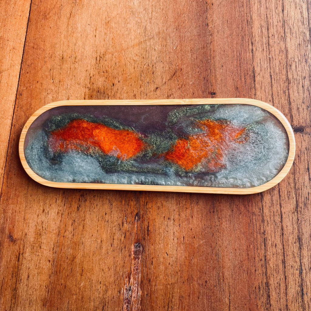 Cada item é singular, feito à mão, com alma e intenção, o resultado final é sempre uma surpresa, nem o artesão tem clareza de como a resina vai se comportar!