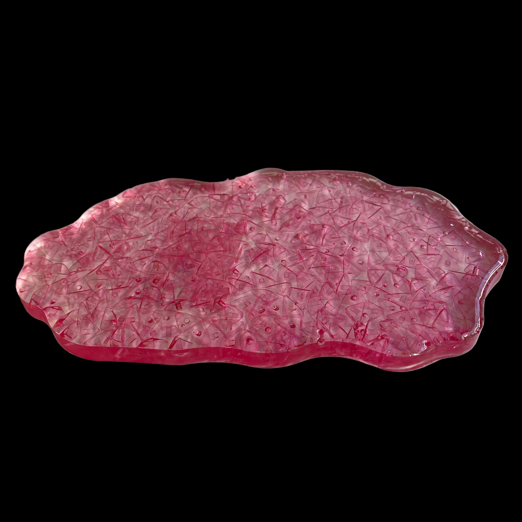 Esta mini bandeja rosa em resina epóxi é leve e resistente, pesando apenas 71g. Possui proteção UV para garantir a durabilidade da bela cor rosa. Com 8cm de altura, 13,5cm de largura e 0,8mm de espessura.
