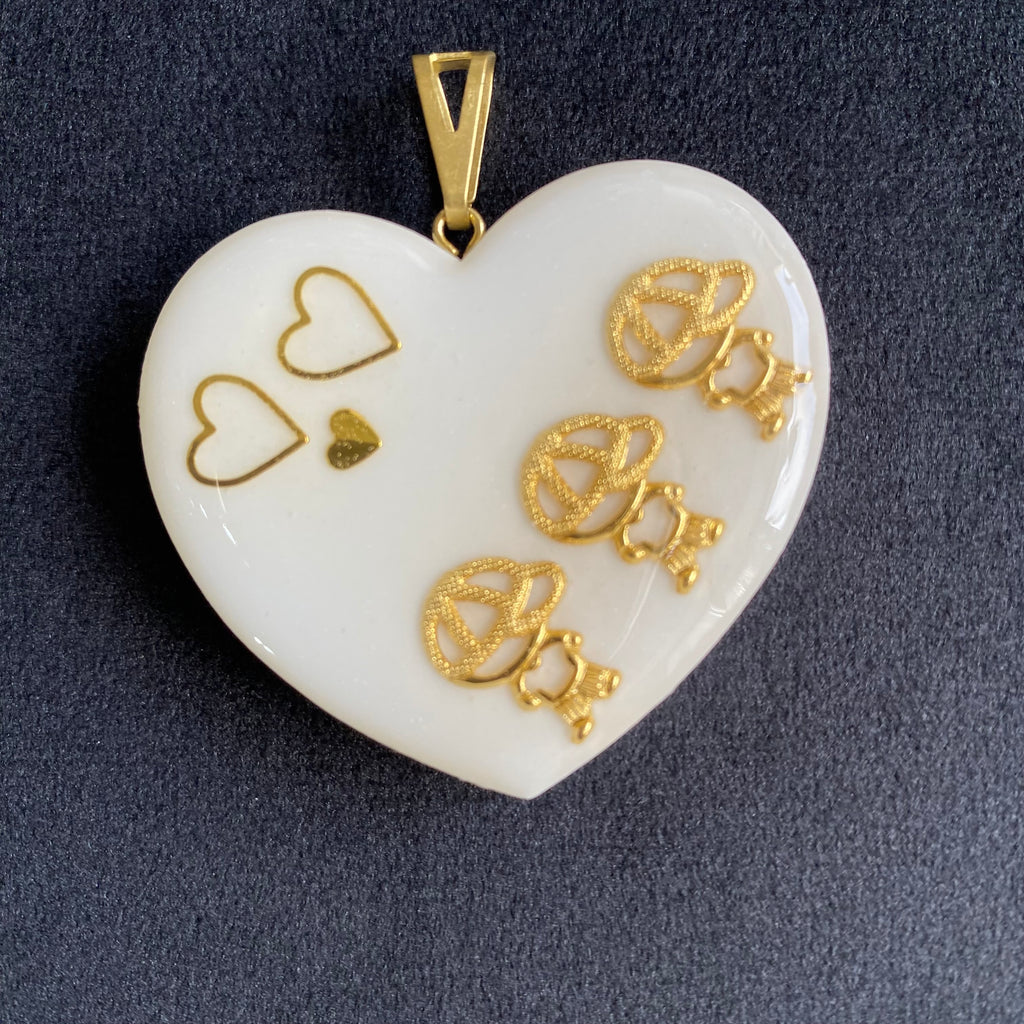 Principais materiais: Leite materno, resina epóxi com UV, com peças e elo com banho de ouro 18.