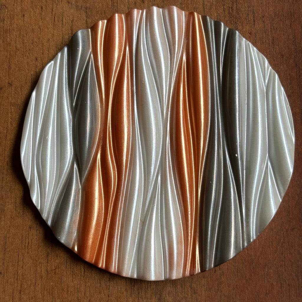 Transforme sua mesa com esse porta-copo exclusivo, feito artesanalmente em resina epóxi. A peça combina tons metálicos de cobre, prata e pérola com um elegante relevo ondulado, trazendo sofisticação e proteção para sua superfície.